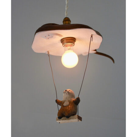 03 樹齢100年近くの楠から彫り上げた、世界にたった一つの彫刻です。壁にかけても、天井からぶら下げても、ゆらゆら揺れるブランコに乗ったシロクマをゆっくり眺めてみてください。